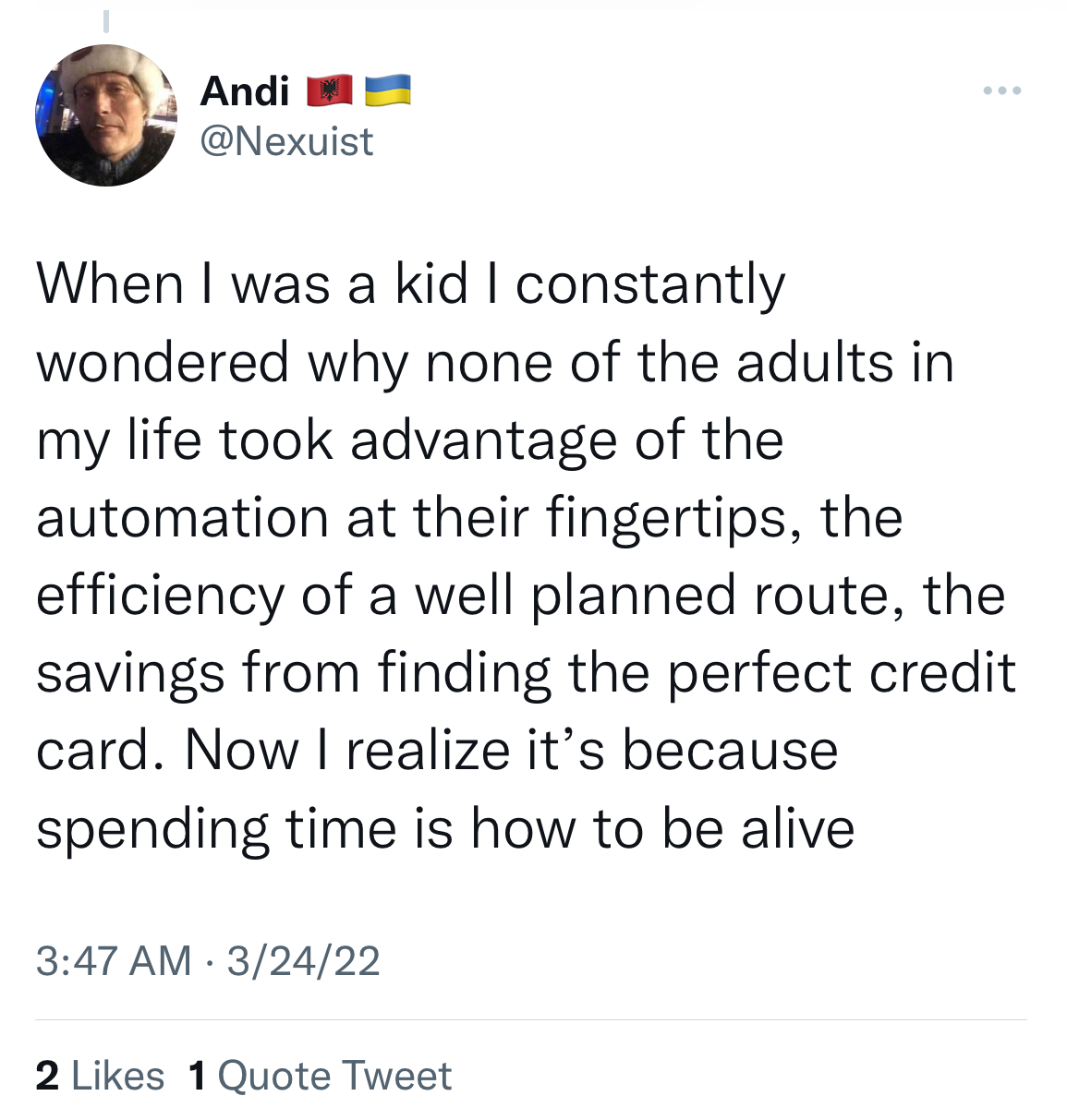 One of the ideas that really stuck with me and put a filter over my worldview was that: When we strive for better time management and optimal productivity, we are perpetually preparing for a future where all of our problems are solved, our to-do list is finished, and we can finally, finally relax. Time becomes a resource to invest again and again towards a perfect future that will never arrive.
